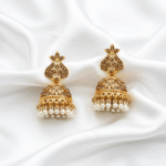 Be the first to review “Exquisite Gold Toned Jhumka Earrings with Pearls and Brown Crystals” Cancel reply